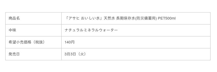 アサヒ飲料株式会社(本社 東京、社長 岸上 克彦)は、「アサヒ おいしい水」ブランドから防災備蓄用商品として「アサヒ おいしい水」天然水 長期保存水PET500mlを2020年3月3日(火)より全国で発売します。