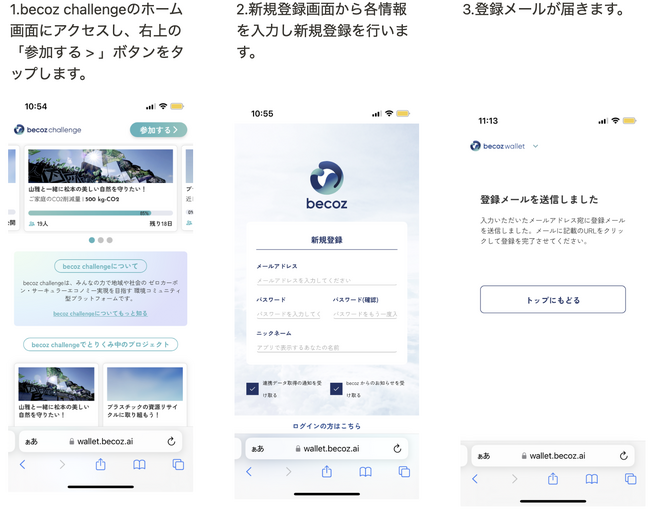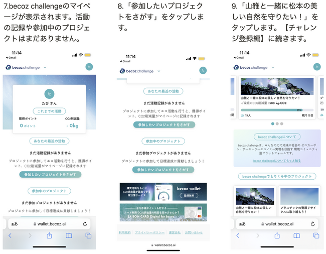 参加方法 becoz challengeのホーム画面:https://wallet.becoz.ai/challenge