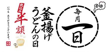 毎月1日限定で『釜揚げうどん』を半額でご提供しております。ぜひこの機会にお腹いっぱいお楽しみください。