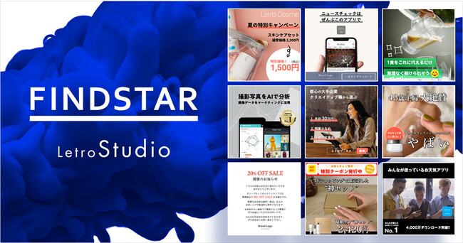 企業のマーケティングDXを支援するアライドアーキテクツ株式会社(東京都渋谷区、代表取締役社長 CEO:中村壮秀、証券コード:6081)でSaaS事業を展開するプロダクトカンパニー(カンパニープレジデント:村岡弥真人)は、このたびダイレクトマーケティング支援事業を展開する株式会社ファインドスター(東京都千代田区、代表取締役社長:渡邊 敦彦、以下ファインドスター)に対し、「運用型制作(※1)」特化型動画制作支援サービス「LetroStudio(レトロスタジオ)」の提供を開始しました。ファインドスターが広告運用代行を行う某化粧品メーカーでは、LetroStudioを使用して動画広告用のクリエイティブを制作したことで半年でLINE広告への出稿額が2.7倍に増額。さらに、静止画とLetroStudioで制作した動画の成果比較では平均CTR1.75倍、CVR1.8倍を実現しました。