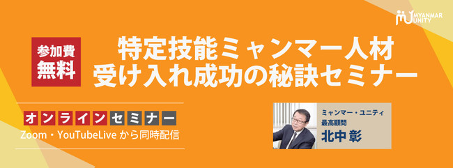 そのような中で、今回ミャンマー政府認定No.1人材送り出し機関「ミャンマー・ユニティ」は、8月23日に「特定技能ミャンマー人材受け入れ成功の秘訣セミナー」を開催いたします。