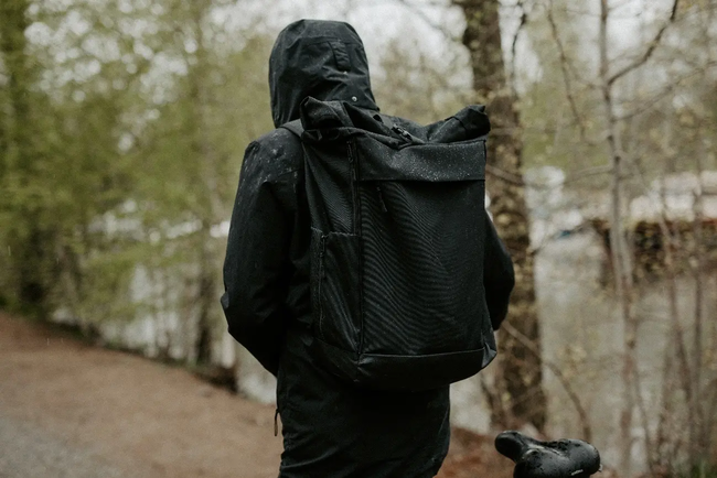 バッグにはロールトップを採用。中の荷物が遠心力で動かないので更なる安定感。