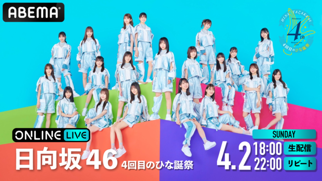 新しい未来のテレビ「ABEMA」は、「ABEMA PPV ONLINE LIVE(アベマ ペイパービュー オンライン ライブ)」にて、人気アイドルグループ・日向坂46の『4回目のひな誕祭』を、2023年4月2日(日)18時より生配信することを決定いたしました。また、本配信のチケットを2023年3月18日(土)12時より販売開始いたします。