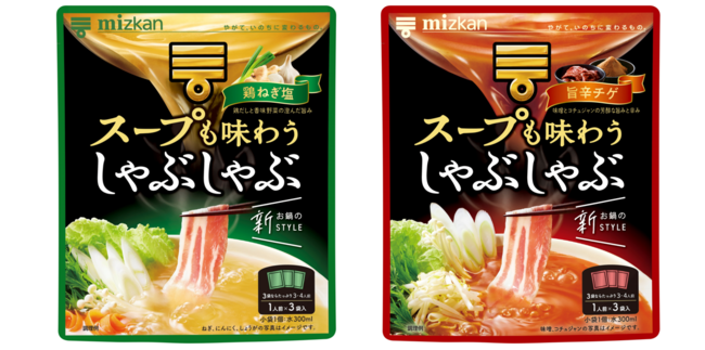 株式会社Mizkan (本社:愛知県半田市、代表取締役社長兼CEO:吉永 智征、以下:ミツカン)は8月4日(木)より「スープも味わうしゃぶしゃぶ 鶏ねぎ塩」「スープも味わうしゃぶしゃぶ 旨辛チゲ」を新発売いたします。