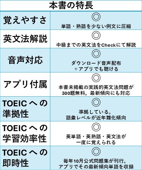 本書購入の方限定で、スコアの稼ぎどころであるPart5(リーディング)対策の300問、基礎単語の理解度チェックの4択クイズ、例文や単語音声、最新傾向単語の収録など、盛りだくさんの無料・専用アプリがついてきます。