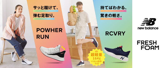 ニューバランスのFresh Foamソールを搭載した機能性シューズを取り揃えた「New Balance Fresh Foam」フェア。前作から人気があったPOWHER RUN(パウハー ラン)をさらに履きやすくアップデートした最新モデルや、手に取ると驚くほど軽量なモデルRCVRY(リカバリー)(26cm/片足で164g)等、スポーツからデイリーユースまで幅広いシーンで活躍するシューズが揃っています。また、POWHER RUNはABC-MART限定カラーのWHITEを展開しています。