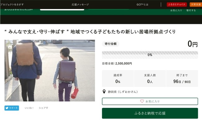 静岡県は本日8月1日、とふるさと納税総合サイト「ふるさとチョイス」が提供するクラウドファンディング型でふるさと納税を募る仕組み「ガバメントクラウドファンディング(R)」(GCF (R))で、子どもの居場所づくりの活動拡大に必要な資金調達に取り組む団体支援を目的とした3つのプロジェクトの寄附募集を開始しました。