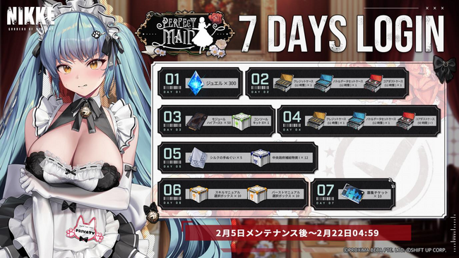 最新バージョン「PERFECT MAID」と関連イベントの詳細は、公式X(旧Twitter)「@NIKKE_japan」または公式サイトをご覧ください。