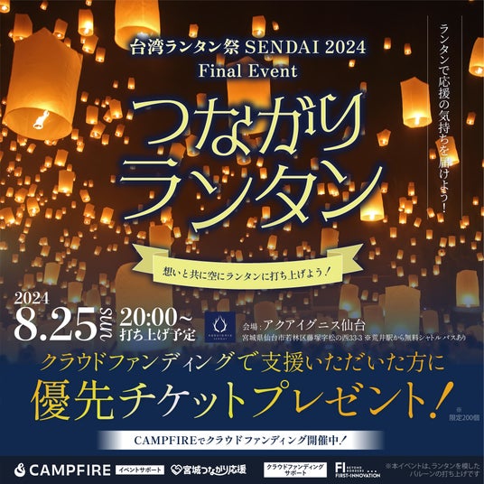 台湾ランタン祭SENDAI2024のフィナーレにアクアイグニス仙台でランタン打ち上げイベント「つながりランタン」開催!優先チケット購入はクラウドファンディングの特設ページより先着順