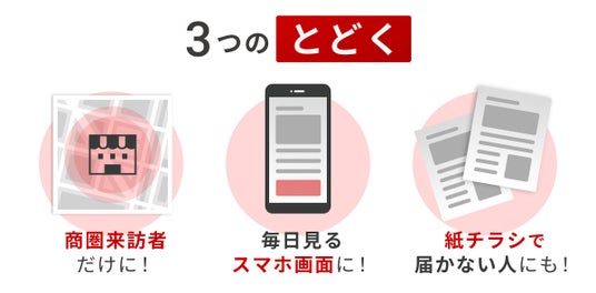 チラシや看板ではリーチしきれなかった若年層や働き世代へ、最も身近なデバイスであるスマートフォン上でアプローチします。