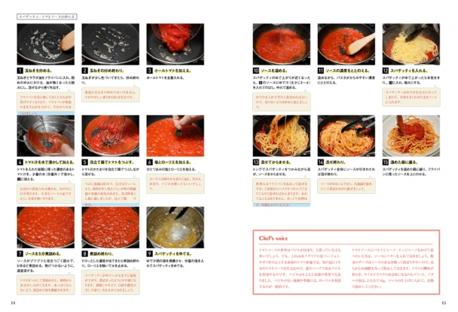 例えば、にんにくは入れすぎない、チーズや風味づけのオリーブ油はたっぷり使う、パスタのゆで汁を多用する、野菜の水分はしっかり抜くなどなど...、これまでの常識を打ち破る「コツ」を伝授しています。