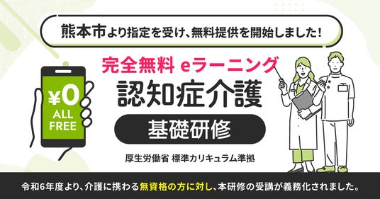 本サービスは、熊本市内に所在する約1,700の介護サービス事業所を対象に、スマートフォンやパソコンから受講可能なeラーニング形式で「認知症介護基礎研修」を提供しています。 研修内容は、認知症に関する基本的な理解や接し方、支援方法などを体系的に学べる構成となっており、介護未経験者や無資格者が受講しやすい設計です。