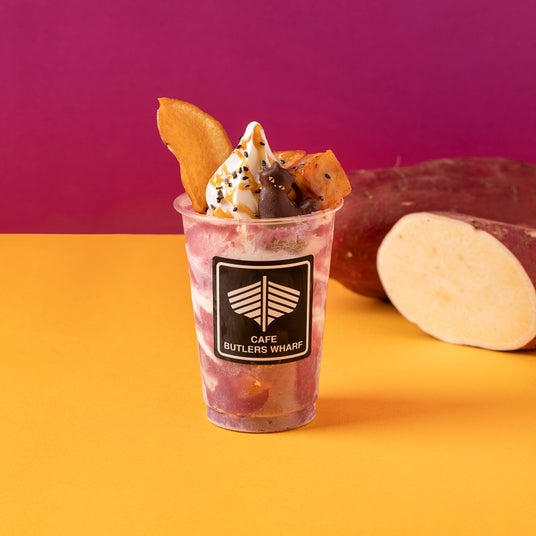 かぼちゃホイップ、紫芋ペースト、さつまいもチップス。