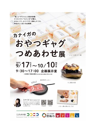 「いちごの将トケー棋」「婚にゃく指輪」など、食べ物とダジャレをテーマにした作品を生み出している若手クリエイター、カナイガさんの個展「カナイガのおやつギャグつめあわせ展」が9月17日(土)、愛知県豊橋市のこども未来館ここにこで始まります。SNSで話題沸騰のカナイガさん。初の本格的な個展で、約60点の作品を立体や写真などで展示します。お見逃しなく。