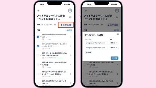 ユーザーは、アクションを共有したい相手のメールアドレスを入力するだけで、アクションを簡単に共有できます。これにより、プロジェクトやタスクの情報を迅速かつ容易に他のユーザーと共有することが可能です。