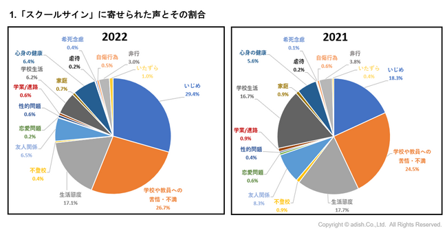 アディッシュ、いじめ匿名連絡サイト「スクールサイン」の2022年度集計結果を発表