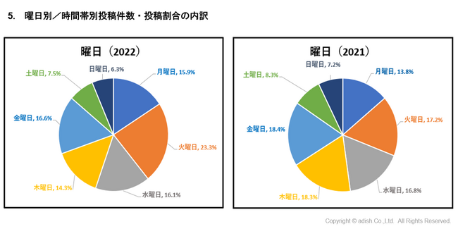 5. 曜日別/時間帯別投稿件数・投稿割合の内訳