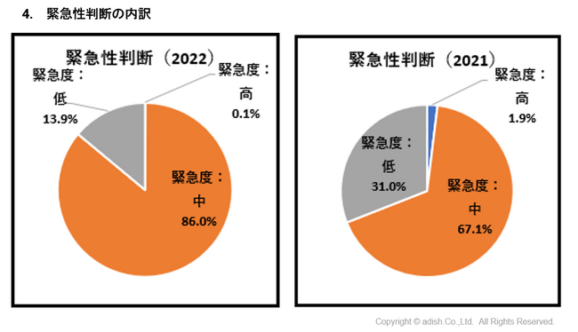 生命に関わるような重大事案の投稿(緊急度高)は前年度より1.8%減少しています。