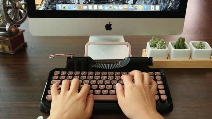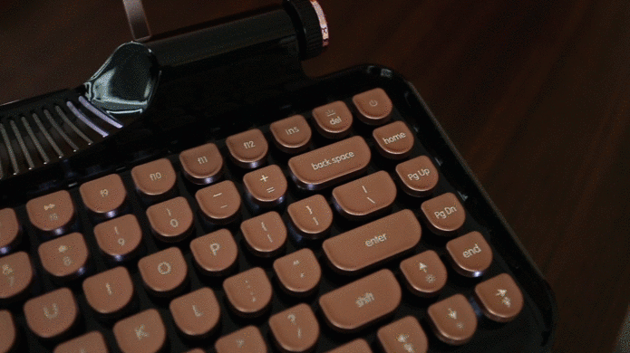 スクロールノブのデザインのインスピレーションは、ビンテージなタイプライターから来ています。オン/オフスイッチとしてボリュームコントローラーを提供します。マルチメディアキーを使用して音楽を制御することもできます。