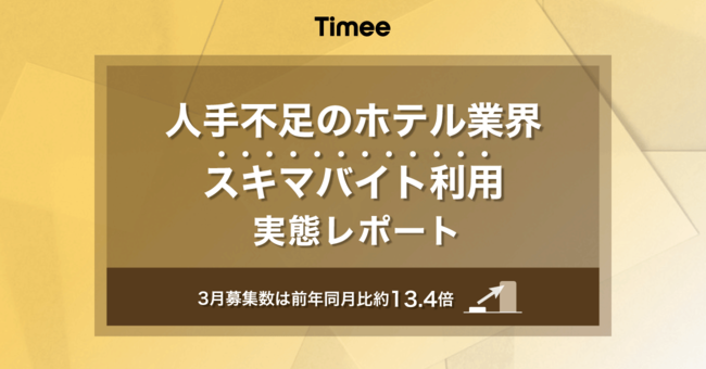 スキマバイトサービス「タイミー」を提供する株式会社タイミー(所在地:東京都港区、代表取締役:小川 嶺)は、ホテル業界事業者のスキマバイト利用動向から見る、インバウンド需要等の拡大によるホテル業界の人手不足状況についてのレポートを発表いたします。