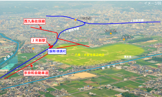 JR新駅や京奈和自動車道(大和北道路)奈良IC(仮称)等の設置が控えている「八条・大安寺周辺地区」。