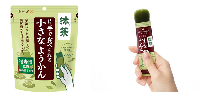 このたび「片手で食べられる小さなようかん」シリーズから、ようかんとして定番人気のフレーバーである抹茶味の『片手で食べられる小さなようかん 抹茶』を発売します。本商品は京都の老舗茶屋「福寿園」との取り組みにおける第4弾商品です。「福寿園監修」宇治抹茶を使用し、抹茶の旨み・渋みをお楽しみいただける本格的な抹茶ようかんに仕上げました。1本14gの食べきりサイズなので、いつでも・どこでも・手軽に、抹茶の風味が濃厚な本格的な抹茶ようかんをお楽しみいただけます。小腹がすいた時や、ほっと一息つきたいタイミングにおすすめです。また、賞味期間は1年間と長持ちするので、買い置き菓子としても最適です。