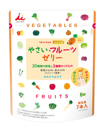 野菜と果物の味わいを楽しめるスティックゼリーです。20種類の野菜と3種類の果物を使用し、手軽に野菜をおいしく食べられます。