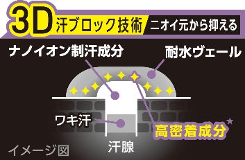 (1)3D汗ブロック技術で、ニオイの発生源「角質層(※1)」までアプローチ