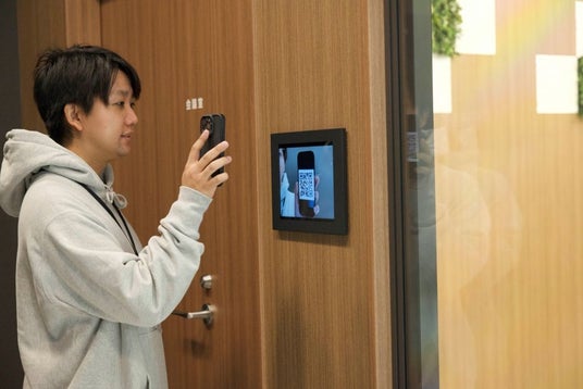 二次元コードで解錠する様子(ドローンラウンジ内会議室)