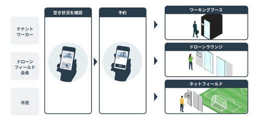 ドローン実験場など豊富な共用施設の予約・入室動線を利用者属性ごとに整備