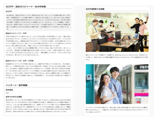 学生がOfferBoxに登録できるプロフィール項目は34項目です。所属学部や資格などの基本情報だけでなく、「自己PR」や「私の将来像」など各項目において最大400文字で記入することができます。従来の履歴書では伝えきれなかった個性や価値観を、自由に表現することが可能です。