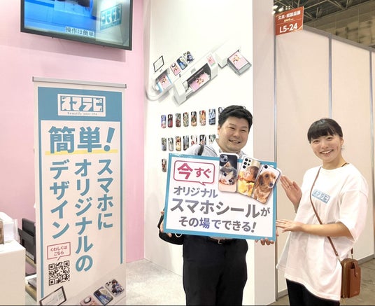展示会イベントにて、オリジナルのスマホステッカーをその場で出力できるサービスを紹介する際に、