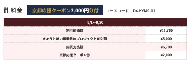 こちらのツアー料金には、往復のハイヤーと対象のお店でのお食事料金と京都応援クーポンが含まれております。