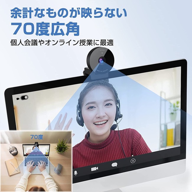 こちらのウェブカメラは、固定フォーカスレンズを搭載して、ピンが合わない心配がいらなく、いつもクリアな画像が撮れます。usbカメラ70度の視野度により、余計なものが映らず、個人用のweb会議やオンライン授業に最適です。※ご注意:こちらのwebカメラは三脚に対応しません。