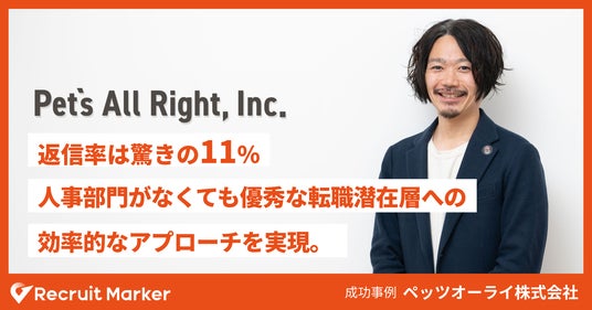 インテント(個人の実現したいキャリア)に基づいた採用成功を実現する、新時代の採用戦略「インテントリクルーティング」を実現する『Recruit Marker(リクルートマーカー)』を開発・提供する株式会社Sales Marker(本社:東京都渋谷区、代表取締役 CEO:小笠原 羽恭)は、24時間365日いつでも専門家に相談できるペット飼育サポートアプリ『ペッツオーライ』※1を提供するペッツオーライ株式会社(本社:東京都中央区、代表取締役:小早川 斉)が、『Recruit Marker』を活用したインテントリクルーティングの実践により、優秀な転職潜在層へのアプローチを実現したことをお知らせします。