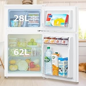 コンパクトながらも大容量で、一人暮らしやワンルームにもぴったりなCOMFEE'の2ドア冷蔵庫。たっぷり収納、冷凍室28L・冷蔵室62Lで、冷凍食品やアイスクリーム、作り置きのおかずなども楽々収納可能。急な来客用のストックにも便利です。冷蔵室は棚やドアポケットを活用することで、野菜や飲み物、調味料などをすっきり整理整頓。**棚部分は取り外し可能なので、小さな物から大きな物まで柔軟に収納でき、使い勝手も抜群です。**さらに、**野菜などを収納できるクリアケース付きで、中が見やすく、鮮度の確認にも便利。**見やすく取り出しやすいレイアウトで、毎日の調理もスムーズに。限られた空間でも収納力と使いやすさを両立した、頼れる一台です。