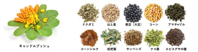 スッキリサポート素材「キャンドルブッシュ」に加え、「ドクダミ」「黒豆」など10種の厳選素材を使用したヘルシーブレンドティーです。原材料は100%植物由来を使用しています。