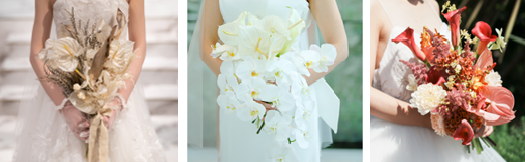 ・会場装花・ブーケともに、ボリュームを重視するよりも、胡蝶蘭、アンスリウム、カラー、アネモネなど、存在感・高級感のある花材を少量使用することが多いです。(アーヴェリール迎賓館名古屋/東沙織)
