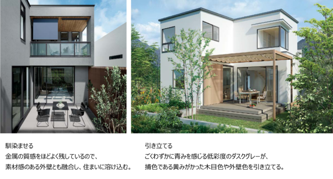 そこで、より多くのお客様にお選びいただけることを目指し、当社のスタンダードな窓シリーズであるハイブリッド窓「サーモスII-H/防火戸FG-H」(※1)にも新たにダスクグレー色を追加いたします。これにより、ダスクグレーで選択できるサッシが増え、高性能住宅のコーディネートの幅が広がります。