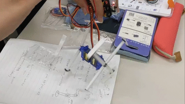 「動くものが作りたくて今回初めてロボット作りに挑戦しました。作っては壊し、という作業が何回も必要だったり、初めのうちは手で支えながら動かしたり、段ボールで試作を作ったりして、探り探り作っていきました。最終的に1人で動いた時は感動しました。ロボット作りは、様々な条件を検討して形にしても、動かしてから問題に気づく難しさがあり、最後まで気が抜けないものだと感じました。その分、完成したロボットを見た時は愛おしく、本当に嬉しかったです!」