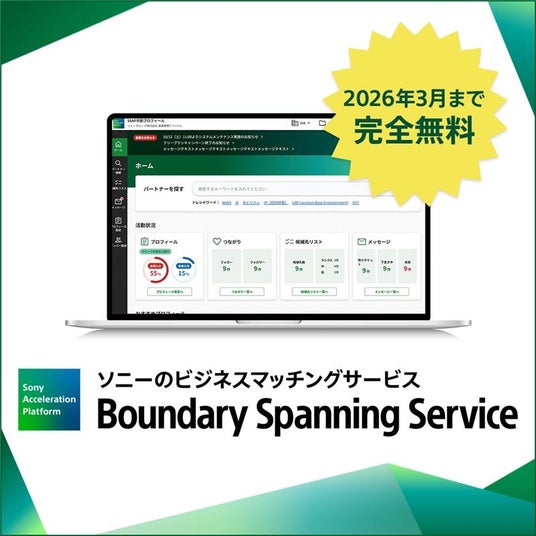 Boundary Spanning Service「協業候補先を見つけるのが難しく、パートナー構築のハードルが高い」、「より手軽に社外の事業部門とつながりたい」といった事業開発における組織・企業の連携の難しさを解消するため、Sony Acceleration Platformが今年1月に提供を開始したビジネスマッチングサービス。部署単位での登録や、公開範囲の指定も可能で、2026年3月末までは無料で利用可能です。利用登録組織数は、2025年8月末時点で1,000件を超え、好評をいただいています。