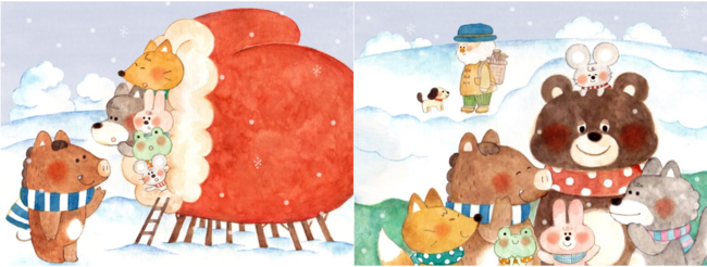 ぎゅうぎゅうになりながらも一つの手袋に肩を寄せ合って入っている姿も可愛くてほっこりします。また、「みんなでいることで温かいね」という最後のセリフが印象的です。