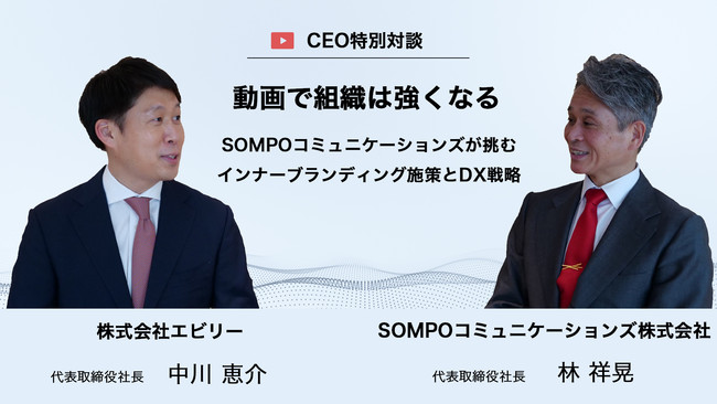 今回は「動画で組織は強くなる。S O M P Oコミュニケーションズが挑むインナーブランディング施策とDX戦略」と題し、S O M P Oコミュニケーションズ株式会社で代表取締役社長を務めていらっしゃる林祥晃氏をお招きし、エビリーの代表である中川恵介との対談を企画。