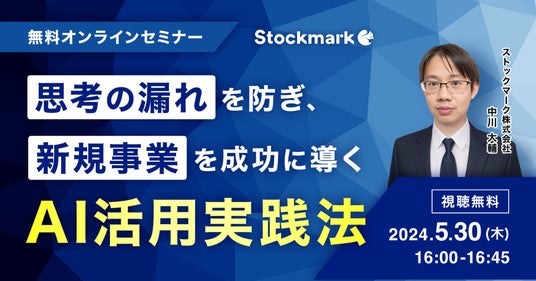 最先端の自然言語処理AIを活用した情報収集サービス『Anews・Astrategy』を提供するストックマーク株式会社(以下、「当社」)はオンラインセミナー『“思考の漏れ”を防ぎ、新規事業を成功に導く AI活用実践法』を5月30日(木) に開催致します。▼オンラインセミナーの詳細と視聴登録はこちら▼