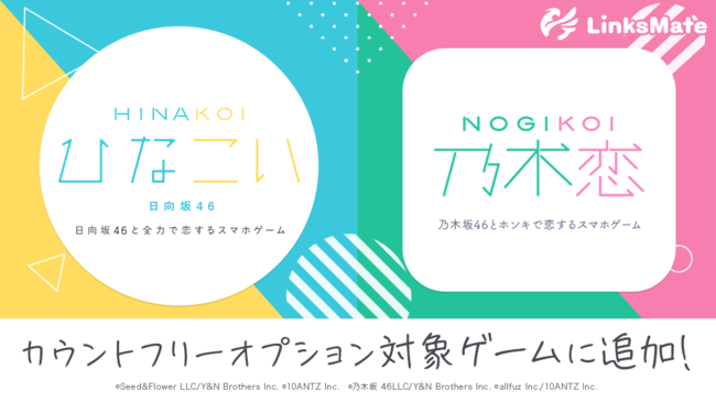 株式会社LogicLinks(以下LogicLinks、本社:東京都渋谷区、代表取締役社長:春田康一)は、MVNOサービス「LinksMate」において2022年2月7日(月)よりカウントフリーオプション対象コンテンツとして株式会社10ANTZ(以下10ANTZ、本社:東京都渋谷区渋谷3-12-18 渋谷南東急ビル4階、代表取締役社長:高澤 真)が提供する『乃木恋』『ひなこい』を新たに追加することをお知らせいたします。
