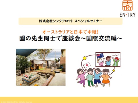 子育て支援サービス事業を営むライクキッズ株式会社(本社:東京都渋谷区、代表取締役社長:岡本 拓岳、以下ライクキッズ)が運営する認可保育園「にじいろ保育園 浜田山」の園長が、株式会社シンクアロット(本社:東京都渋谷区、代表取締役社長:前出 貴則、以下シンクアロット)が1月26日(木)に開催したウェビナー「オーストラリアと日本で中継!園の先生同士で座談会~国際交流編~」にゲストスピーカーとして登壇し、にじいろワールドフレンズについて話しました。