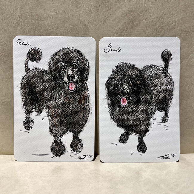 このたびの『ライブドローイング』は、愛犬の特徴を捉えた高いクオリティで注目されており、ペット業界でも大人気なイベントとなっており、お店へ遊びにいらしてくれたわんちゃんや、虹組のわんちゃんの写真をもとに、生き生きとした個性を表現していきます。生命観にあふれた線とやわらかな色合いが絶妙にマッチした画風で、愛犬の姿を似顔絵アートにのせて永遠に残すことができます。ドローイング後は、作品だけでなくメイキング映像もあわせてプレゼントいたします。