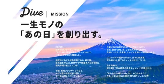 ダイブは、日本経済の成長エンジン「観光」の大課題を解決すべく、事業展開しているベンチャー企業です。