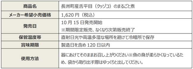 『長洲町産舌平目のまるごと煮』は、高温調理加工(レトルトパウチ)のため、家庭では調理せずに楽しむことが