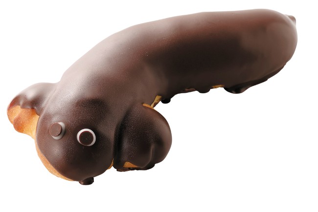 「うなぎぱん」はパンの表面をチョコレートでコーティングすることでうなぎの表皮のてりや色味を表現し、今にも動き出しそうなうなぎそのものの見た目を再現いたしました。ふわふわのパン生地にチョコチップを練りこみ、ふわふわ食感にコーティングしたチョコのパリパリ食感をお楽しみいただけます。